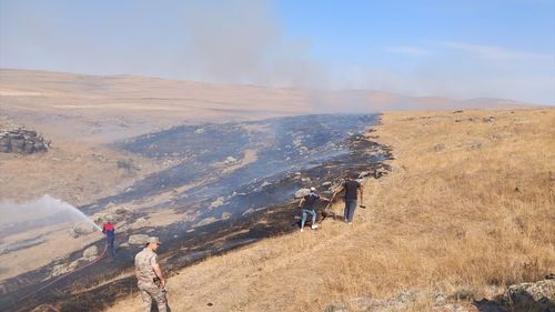 Kars'ta Anız Yangını Gelirli Köyü'nde Söndürüldü