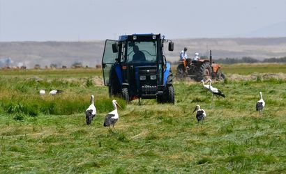Çiftçilerin traktörlerle yulaf ve çayır tarlalarında otları biçmesiyle çayırlık alanlar leyleklerle dolup taşıyor. Kurbağa, solucan ve çekirge gibi canlılarla beslenen leyleklerin görüntüleri dikkat çekiyor.