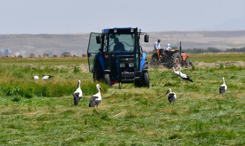 Kars'ta yaz mevsiminin gelmesiyle birlikte çiftçiler hasada başladı. Uzun ve çetin kışın ardından ilkbaharda bölgeye gelen leylekler, hasat zamanı çayırlık alanlarda topluca beslenirken görüntülendi.
