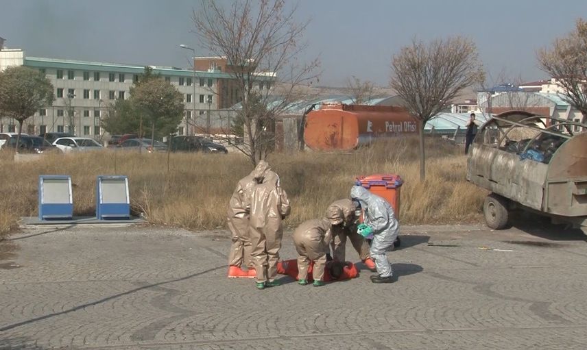 Kars'ta düzenlenen Hastane Afet Planı (HAP) tatbikatı, gerçeği aratmayacak şekilde yürütüldü. Harakani Devlet Hastanesi koordinasyonunda gerçekleştirilen tatbikatta, AFAD, UMKE, 112 Acil Sağlık Hizmetleri ve itfaiyenin iş birliğiyle senaryo gereği Ayaktan Kemoterapi Ünitesi'nde başlayan yangın ve sonrasında gelişen KBRN olayı üzerine acil durum planı devreye alındı.