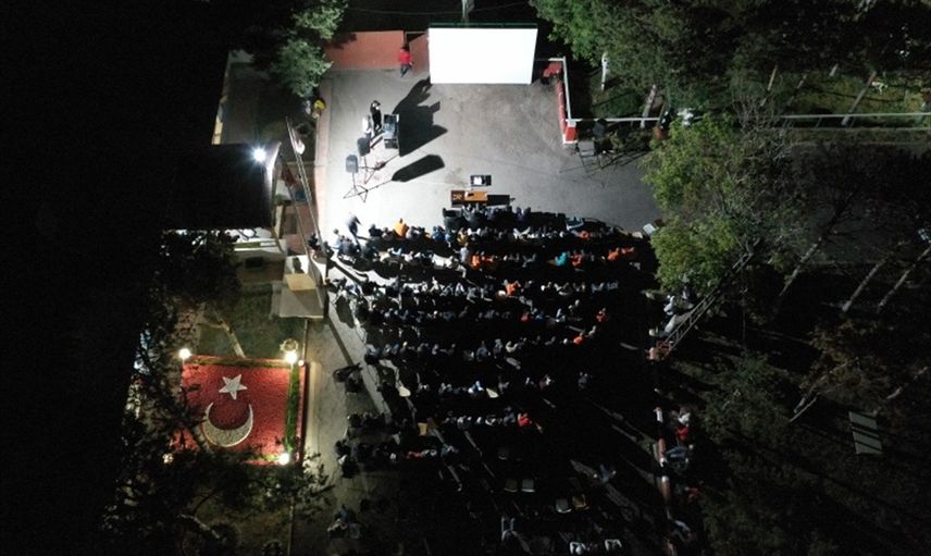 Kars Açık Ceza İnfaz Kurumu bünyesinde bulunan hükümlüler için açık hava sinema gösterimi düzenlendi.