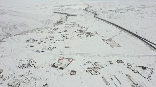 Kars'ta etkili olan kar yağışı köyleri beyaza bürüdü. Dronla kaydedilen görseller muhteşem bir kış manzarası sunuyor.