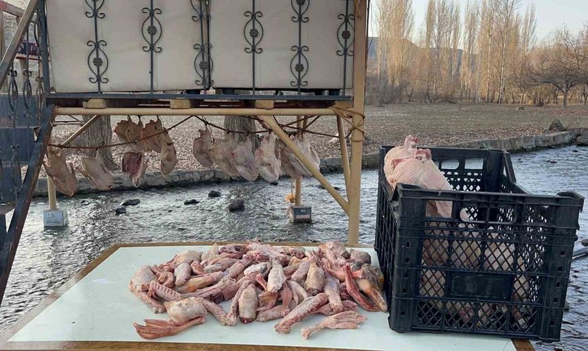 Türkiye’nin önemli kaz yetiştiriciliği merkezlerinden Karsta, yörenin meşhur lezzeti olan kazların kesiminin ardından geleneksel kurutma süreci başladı. Kış aylarının çetin soğuklarından faydalanılarak hazırlanan kurutulmuş kazlar, ocak ayından itibaren sofralardaki yerini alacak.