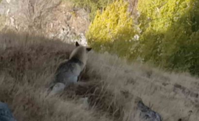 Kars Kalesi arkasında yiyecek arayan kızıl tilki, çevredeki bir vatandaş tarafından fark edildi. O anlar vatandaşın cep telefonu kamerasıyla kaydedildi.