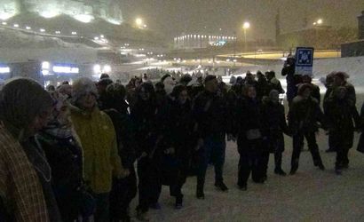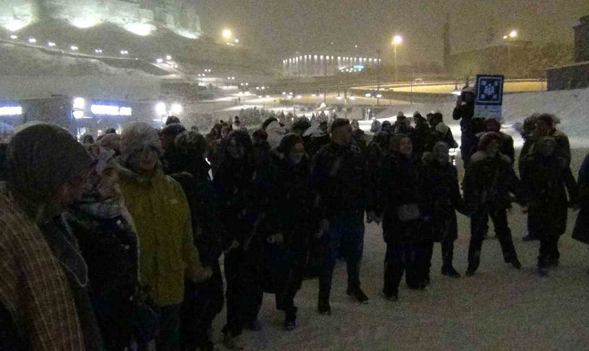 Doğu Ekspresi ile kente gelen yerli ve yabancı turistler de halay halkalarına dahil olup bu unutulmaz anları cep telefonlarıyla kaydetti. Kar tanelerinin ışıklarla birleştiği meydanda vatandaşlar halay çekerek eğlendi.