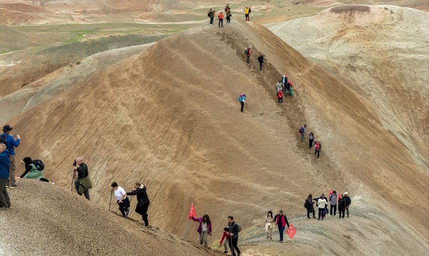 Kars ve Iğdır'da dağcılar, 29 Ekim Cumhuriyet Bayramı dolayısıyla Gökkuşağı Tepeleri'nde yürüyüş düzenledi.