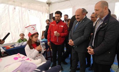 Okul bahçesinde hazırlanan stantlarda, Kızılay'ın afetlerden savaş dönemlerine kadar yürüttüğü çalışmalar öğrenciler tarafından ziyaretçilere anlatıldı. Ziyaretçiler miniklerin hazırladığı sunumları ilgiyle gezdi. Etkinlik boyunca dayanışma, merhamet ve insanlık değerlerinin önemi vurgulandı.