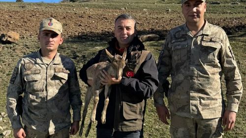 Erzurum Oltu'da kartalın yaraladığı yaban keçisi yavrusu tedaviye alındı, sağlığına kavuşunca doğaya bırakılacak.