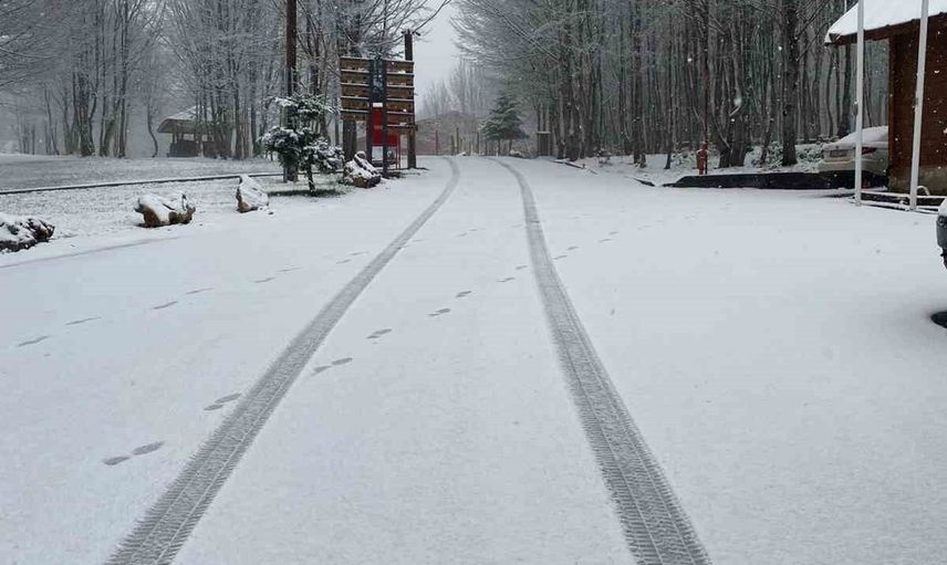 Kocaeli'nin Kartepe ilçesinin yüksek kesimleri, lapa lapa yağan karla beyaza büründü.