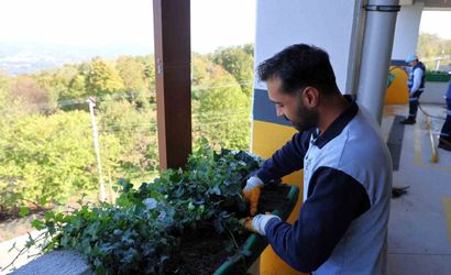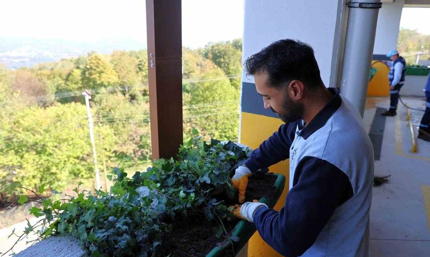 Park ve Bahçeler Dairesi Başkanlığı ekipleri, otoparkın dış cephesinde estetik bir görünüm oluşturmak için çalışma yürüttü. Beton yapının soğuk görüntüsünü yumuşatmak ve doğayla uyumlu hale getirmek amacıyla binanın çevresine 192 adet hedera sarmaşığı dikildi.