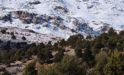 Antalya'nın Kaş ilçesinde soğuk havanın etkili olduğu yüksek rakımlı bölgeler kar yağışıyla birlikte beyaza büründü.