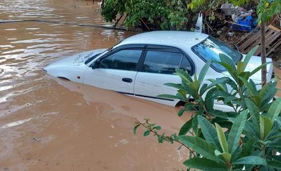 Yoğun yağış nedeniyle cadde ve sokaklarda su birikintileri oluştu; bazı araçlar bu su birikintilerinde mahsur kaldı.