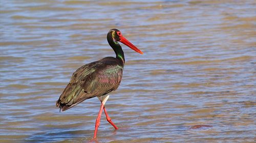 Kastamonu'nun Abana ilçesindeki Ezine Çayı'nda nadir görülen kara leylek, doğa fotoğrafçısı tarafından görüntülendi.
