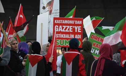 Filistin'e Destek Platformu tarafından düzenlenen etkinlikte İnebolu Limanı'nda toplanan tekneler Filistin bayraklarıyla donatıldı. Sahilde toplanan vatandaşlar ise Türk ve Filistin bayraklarıyla teknelere eşlik etti.