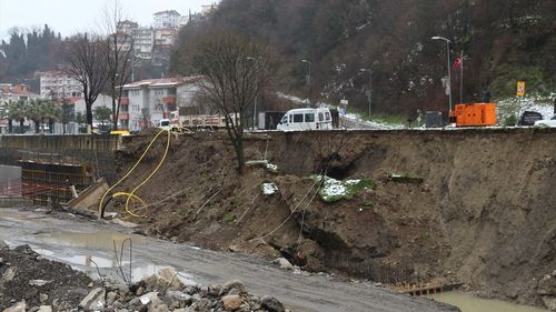 Kastamonu'nun İnebolu ilçesinde etkili olan sağanak yağış, dere yatağındaki istinat duvarlarının çökmesine neden oldu.