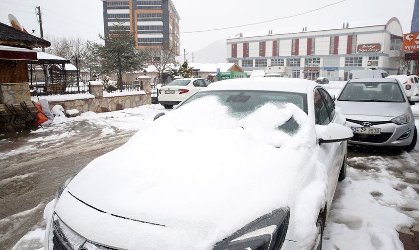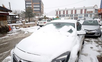 Kastamonu'nun yüksek rakımlı ilçelerinde etkili olan kar yağışı nedeniyle bazı araçların üzeri karla kaplandı.