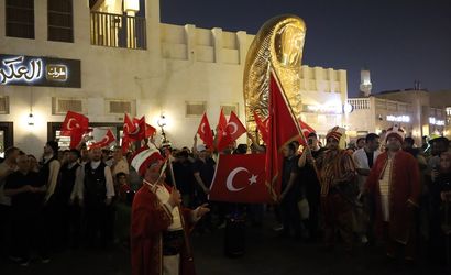 Katar'ın başkenti Doha'daki tarihi Suk Vakıf Meydanı'nda düzenlenen mehter yürüyüşü ve horon gösterisi, katılımcılardan büyük ilgi gördü.