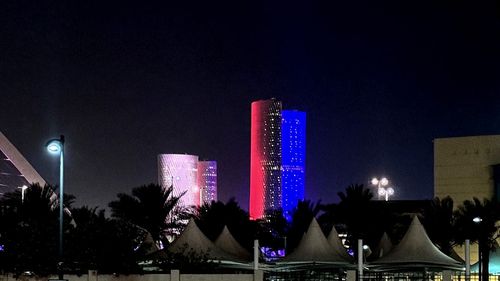 Doha'daki gökdelenler, Trump'ın ziyareti nedeniyle ABD bayrağının renklerine büründü ve şehir çeşitli süslemelerle donatıldı.