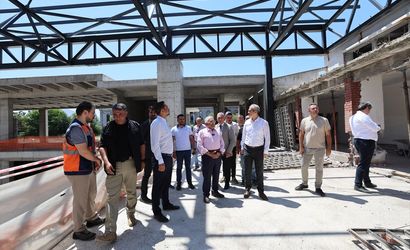 Kayseri Büyükşehir Belediye Başkanı Memduh Büyükkılıç (ortada), 7,5 milyon yıllık fosillerin sergileneceği Paleontoloji ve Fosil Müzesi inşaatını inceledi.