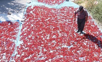 Kayseri'nin Cırgalan Mahallesi'nde yıllardır ata tohumuyla üretilen coğrafi işaretli biber, müstakil evlerin damları, sokak araları ve balkonlarda kurutulup toz biber haline getirildikten sonra sofralardaki yerini alıyor.