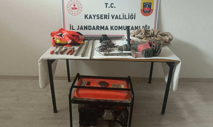 Kayseri Valiliğinden gelen bilgilere göre, İl Jandarma Komutanlığına bağlı ekipler, ilçede izinsiz kazı yapıldığı yönünde ihbar aldı. Bu ihbar üzerine, Çökmekçi Mahallesi Su Döken mevkisine yönelen ekipler, bellerinden ipe bağlı bir şekilde uçurumun kenarında kazı yapan A.Ş., N.S. ve B.S. isimli şahısları suçüstü yakaladı.