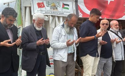 Etkinliğe, Filistin Dayanışma Platformu bünyesinde bir araya gelen kadınların yanı sıra erkek gönüllüler de katıldı. Çadırın önünde düzenlenen toplu duada, katılımcılar birlikte dua etti.