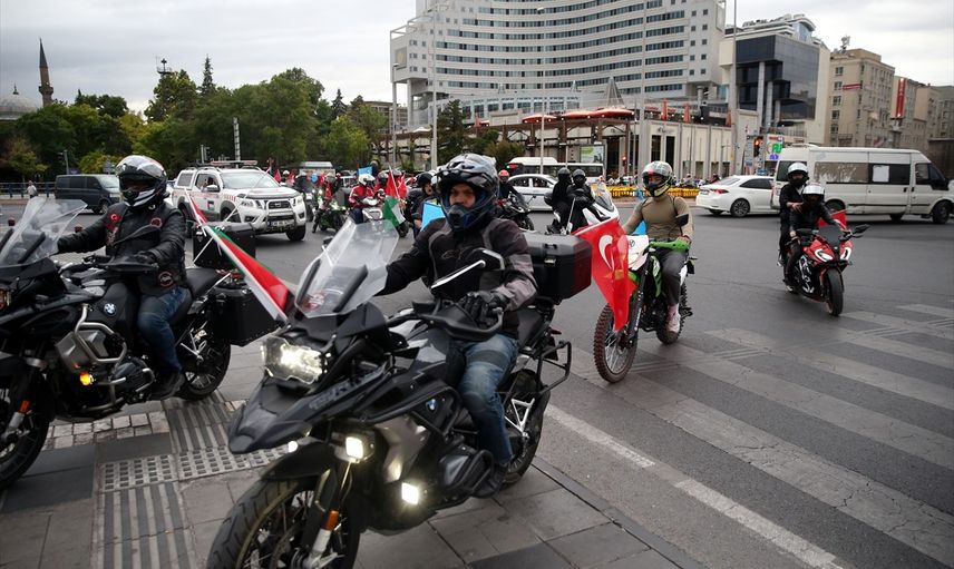 Kayseri'de, Alfa Kayseri Motosiklet Kulübü öncülüğünde toplanan yaklaşık 200 motosikletli, Gazze'deki saldırıları protesto etmek amacıyla sokaklarda tur attı. İnsani bir mesaj vermek için düzenlenen etkinlikte, motosikletçiler Talas Paraşüt Alanı'ndan başlayarak Cumhuriyet Meydanı'na kadar sürdü.