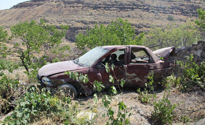 Kayseri'nin Talas ilçesinde müstakil evin bahçesine düşen otomobilin sürücüsü yaralandı.