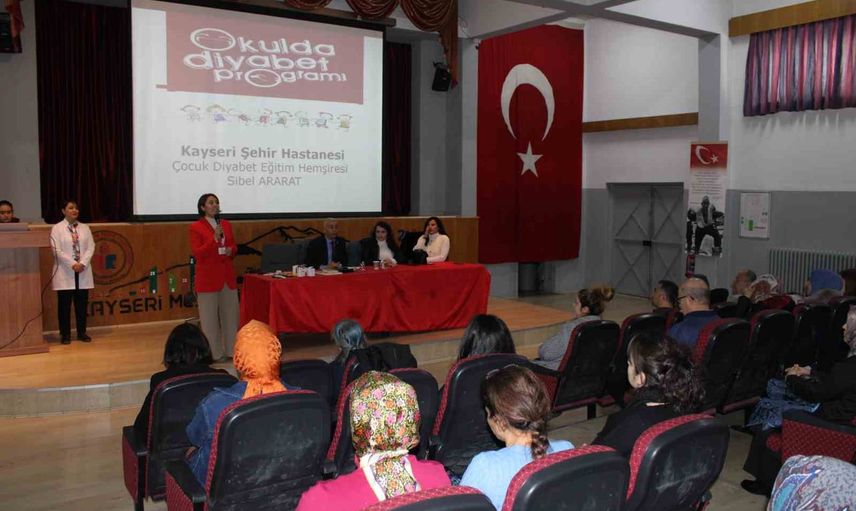 Kayseri'de eğitim gören diyabetli öğrencilerin güvenliği için öğretmenlere uygulamalı olarak insülin ve glukagon eğitimleri verildi.
