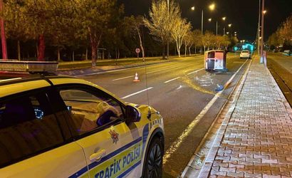 Kayseri’de Önüne Köpek Çıkan Araç Yan Yattı