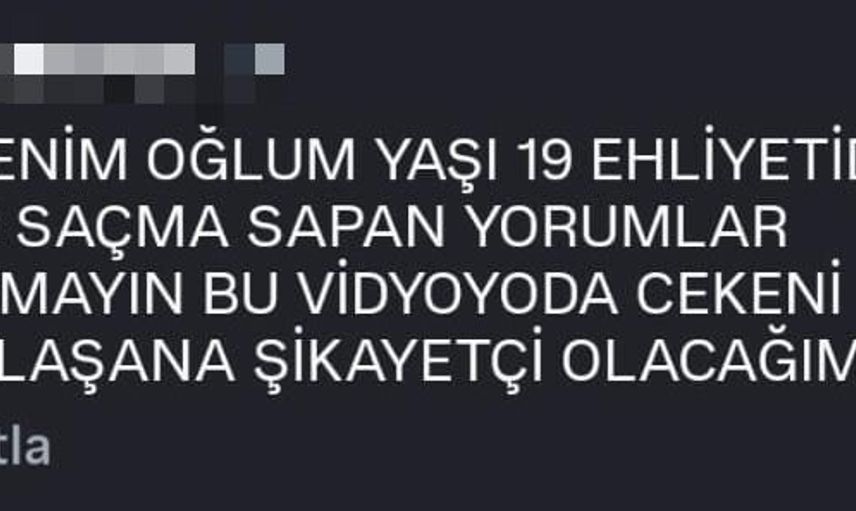 Söz konusu paylaşımın altına yorum yapan sürücünün babası, oğlunun 19 yaşında olduğunu ve ehliyetinin bulunduğunu belirtti. Baba, videoyu çeken ve paylaşan kişiler hakkında şikayetçi olacağını söyledi.