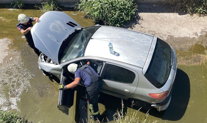 Kayseri'de su kanalına düşen araçta sürücü yaralandı