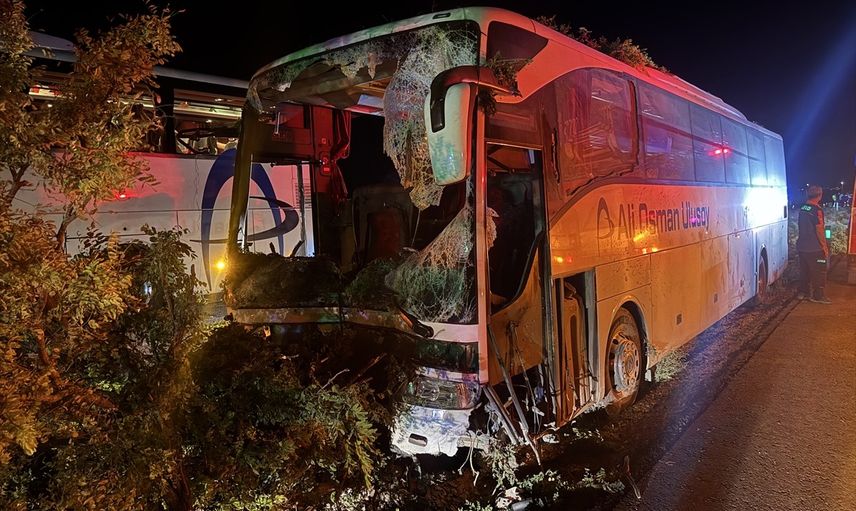 Otobüs, yaklaşık 200 metre boyunca orta refüjde seyredip çok sayıda ağaca çarptıktan sonra güçlükle durabildi.