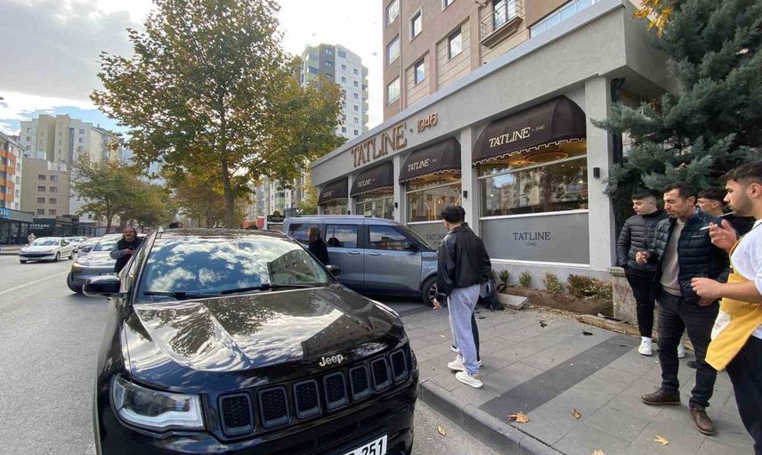Çarpışmanın etkisiyle hafif ticari araç kafenin duvarına çarptı. Olayda yaralanan olmadı.