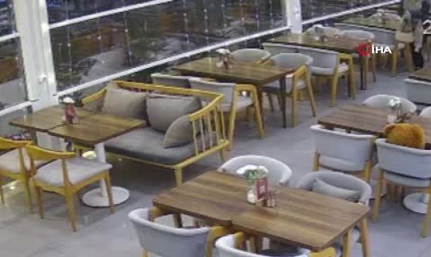 Kazaya ilişkin güvenlik kamerası görüntülerinde, otomobil kafeteryaya girmeden saniyeler önce iki kişinin aracın girdiği bölümdeki masaya oturmak üzere olduğu ve kazayı saniyelerle atlattıkları görüldü. Olayla ilgili inceleme sürüyor.