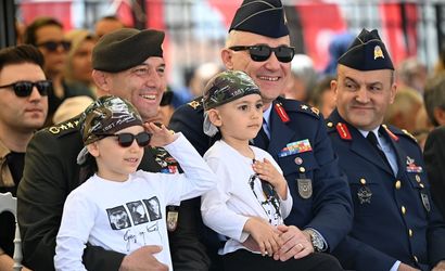 Öğrencilerin ve öğretmenlerin katılımıyla devam eden törende saygı duruşunda bulunuldu ve İstiklal MarşıAdana'daki İncirlik Üssü'nden havalanan F-16 uçakları gösteri uçuşu yaptı.