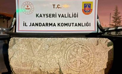 KAYSERİ'NİN YAHYALI İLÇESİNDE JANDARMA EKİPLERİ TARAFINDAN YAPILAN ÇALIŞMALARDA; BİR KİŞİNİN EVİNDEN VI. YÜZYILA AİT KAPI SOVESİ ELE GEÇİRİLDİ.