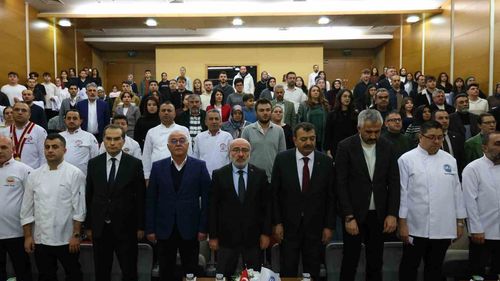 Kayseri Üniversitesi'nde düzenlenen Önlük Giydirme Töreni'nde Gastronomi ve Aşçılık öğrencileri önlüklerini giyip yemin etti; rektöre özel bıçak verildi.
