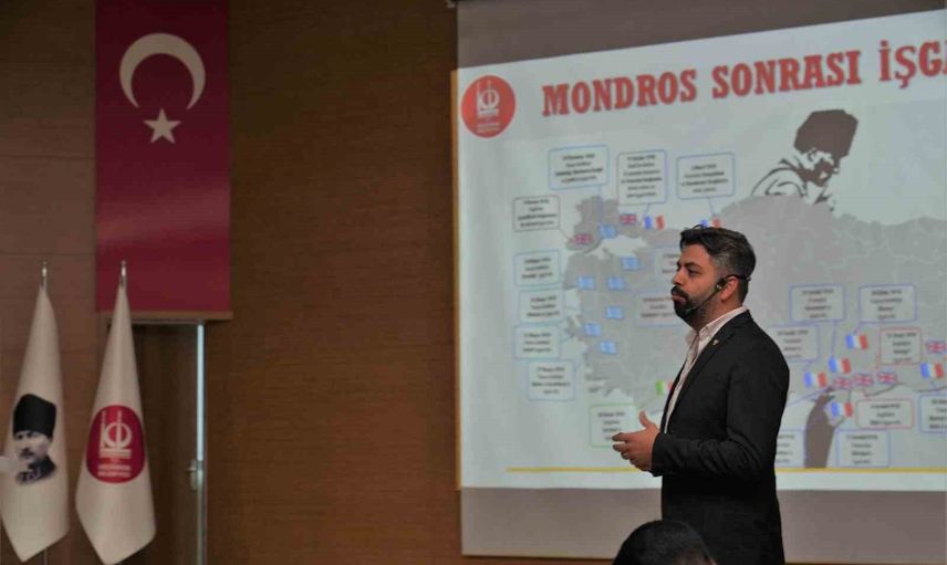Seminerde Sosyolog Hakan Çakmak, Atatürk’ün yaşamı, liderliği, Cumhuriyet dönemi kazanımları ve ilke-devrimleri hakkında katılımcılara bilgiler aktardı.