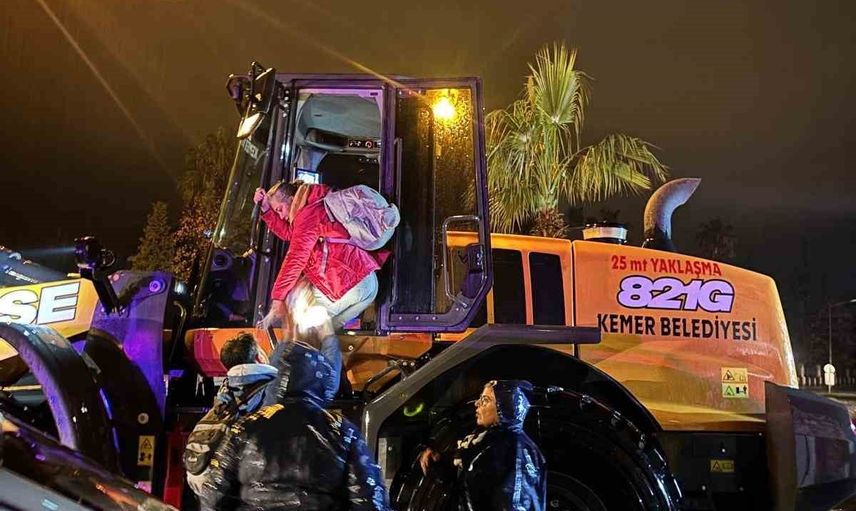 Başkan Topaloğlu konuyla ilgili, "Kemer’de şiddetli yağış nedeniyle Çamyuva Mahallemizde bir ailemiz mahsur kaldı. Belediyemiz ve jandarma ekiplerimizin ortaklaşa çalışması ile kepçe yardımıyla ailemizi kurtardık. Ailemizi mahallemizde bir pansiyona yerleştirdik ve tüm ihtiyaçlarını karşılıyoruz. Belediye ekiplerimiz teyakkuz halinde sahada olmaya devam ediyor" dedi.
