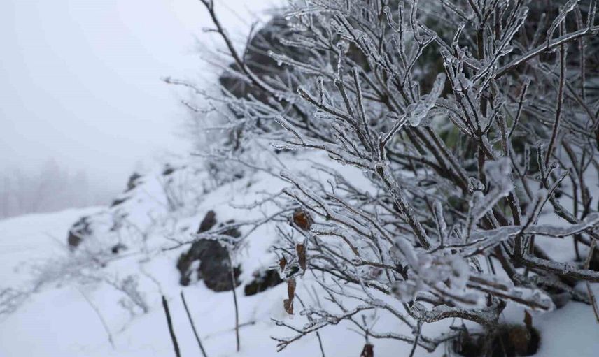 Kar yağışına eşlik eden yoğun sis, bölgedeki doğal güzelliği daha da ön plana çıkardı ve ortaya etkileyici görüntüler çıktı.