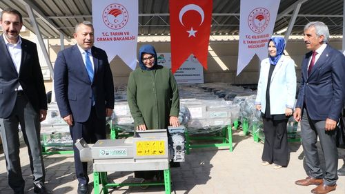 Kilis'te çiftçilere, Tarım ve Orman Bakanlığı'nın desteklediği projeyle makine ve ekipman dağıtıldı.