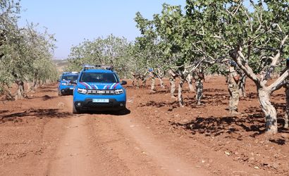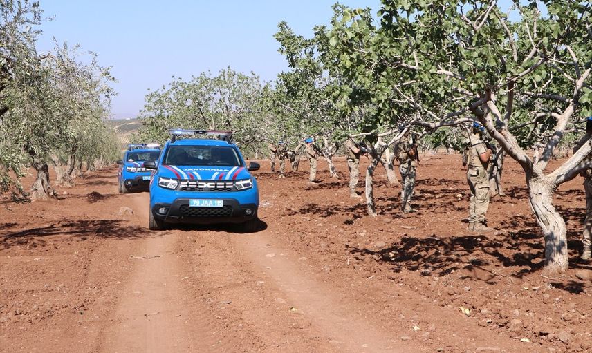 Kilis'te, jandarma ekipleri, yaklaşan Antep fıstığı hasatı öncesi hırsızlık olaylarını engellemek için karadan ve havadan denetim gerçekleştiriyor.