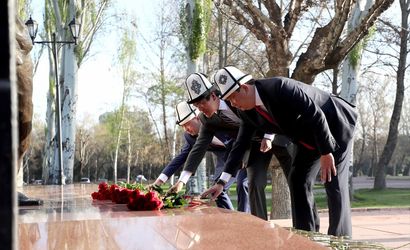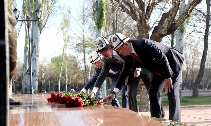 Törene Bakanlar Kurulu Başkanı Edil Baysalov, Kültür, Enformasyon ve Spor Bakanı Mirbek Mambetaliyev ve Bişkek Büyükşehir Belediyesi Başkanı Aybek Cunuşaliyev katıldı. Katılımcılar, anıta çiçek bıraktı ve bir dakikalık saygı duruşunda bulundu.