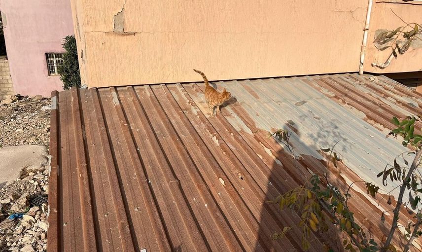 HATAY’DA ÇATIDA MAHSUR KALAN KEDİ İTFAİYE EKİPLERİ TARAFINDAN KURTARILDI.