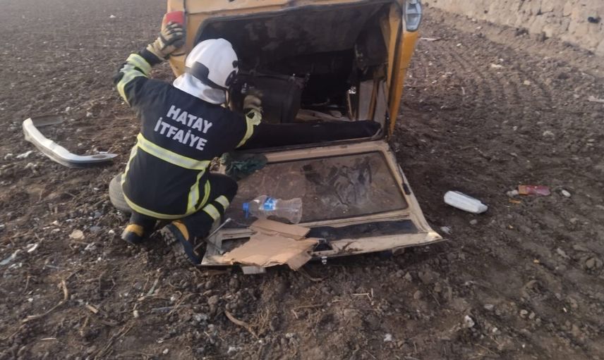 Hatay’da şarampole devrilerek tarlaya uçan otomobilin sürücüsü yaralandı.