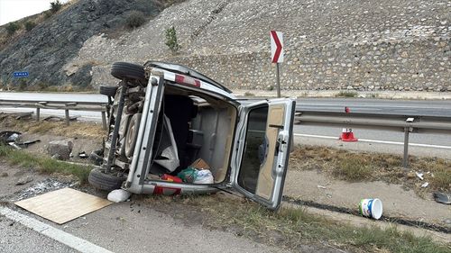 Kırıkkale'de devrilen hafif ticari araçta 1 kişi hayatını kaybetti, 1 kişi ağır yaralandı.