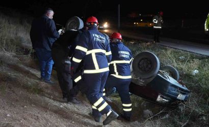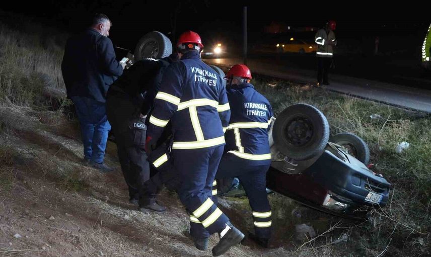 Gece saatlerinde Kırıkkale Çevrealtı Caddesinde meydana gelen kazada, sürücü S.B. yönetimindeki 71 FE 400 plakalı otomobil kontrolden çıkarak takla atıp şarampole devrildi.