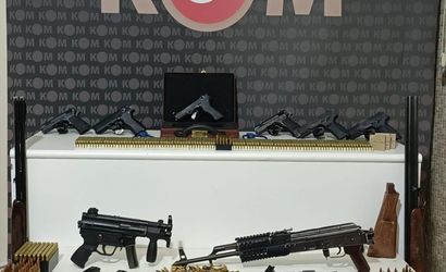 Yapılan aramalarda, 1 adet otomatik piyade tüfeği, 7 adet otomatik tabanca, 2 av tüfeği, 21 şarjör, 3 bin 332 fişek, 45 av tüfeği kartuşu ve 2 silah kilit mekanizması ele geçirildi.
