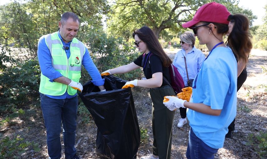 Kırklareli'nde "Avrupa Hareketlilik Haftası" kapsamında çevre temizliği yapıldı. Kırklareli Belediyesince Karahıdır Korusu'nda gerçekleştirilen etkinliğe Belediye Başkanı Derya Bulut (solda) ile yaklaşık 50 öğrenci katıldı.